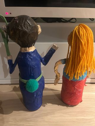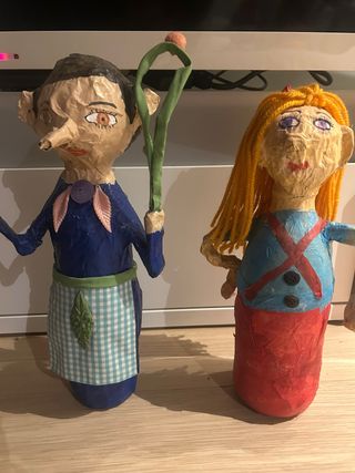 Originales muñecos artesanales creados a partir de botellas. - Figuras únicas hechas a mano. - Decoración llamativa y original.