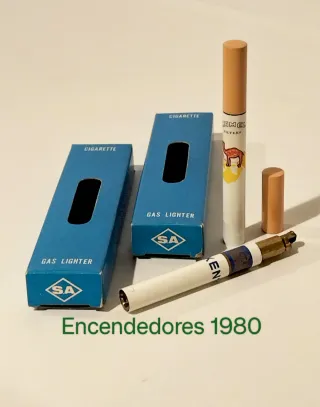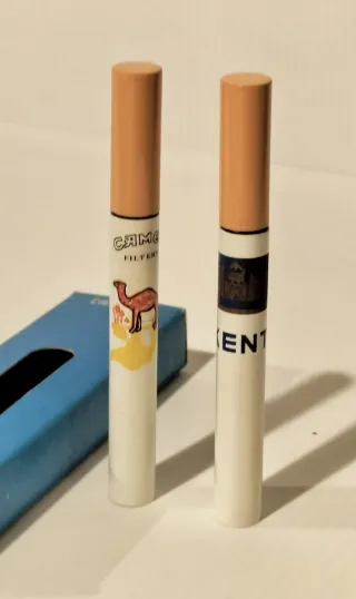 Lote de 2 encendedores a gas con forma y tamaño de cigarrillo en su caja original, década de 1980, marca de tabaco Camel y Kent, nuevos sin usar, pero seguramente a repasar ya que estarán agarrotados del paso del tiempo. Ideal coleccionista.