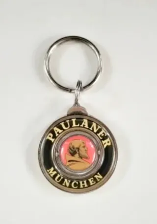 Llavero cerveza Paulaner Munich-München, excelente estado, el centro rojo del logotipo con el monje gira ( ver foto ), años 90 +/-.