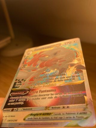 Carta Pokémon V-ASTRO de Zoroark de Hisui. - Poder V-ASTRO: Maldición Inminente. - Habilidad: Astro Fantasma. - PS: 270. - Código: SWSH298. - Año: 2022.