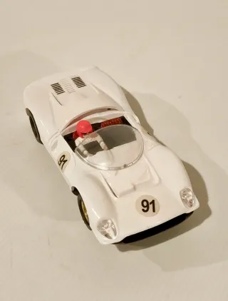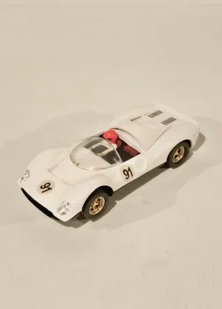 Recreación artesanal de Ferrari GT 330, escala 1/32, procede de colección en vitrina de familiar fallecido. Diferencias con los originales: Pintado con aerógrafo en blanco y chasis negro satinado, el cristal se aguanta en un sólo punto ya que están cortados los laterales y tiene un pequeño desperfecto lateral (ver última foto), no está pintado el interior de la carrocería (ver foto inferior chasis), los neumáticos no son originales (son tipo slick), llantas doradas, en buen estado general, funcionando, base coche colección Altaya. Slot, Revell, Exin C-41, Flyslot, Ninco, Carrera, Slot.it, Scalextric, ....