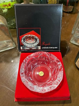 Elegante cenicero de cristal tallado de la marca Cristal d’Arques, modelo Roya. Presenta un diseño clásico y refinado. - Material: Cristal. - Modelo: Roya. - Marca: Cristal d’Arques.