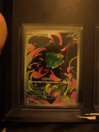 Cartaa Pokémon de Bulbasaur e Ivysaur con arte especial. - Números de carta: 064/063 AR y 065/063. - Idioma: Coreano. - Ataque: 붙들어매기 (Enredar).