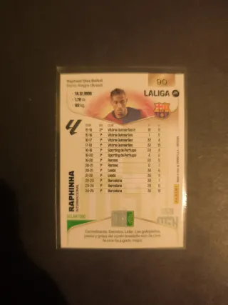 Carta de Raphinha de la colección Megacracks 2025/26. - Diseño oficial del FC Barcelona. - Incluye el escudo del club. - Logotipo de Panini.