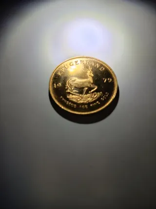 Moneda Krugerrand de 1 onza de oro. - Acabado dorado brillante. - Diseño detallado del perfil. - Inscripción South Africa en el borde. Estado Flor, no ha circulado. Sólo venta en persona, se acepta prueba en joyería a elegir por comprador. No hablo con perfiles nuevos y sin valoraciones. SOLO VENTA EN MANO