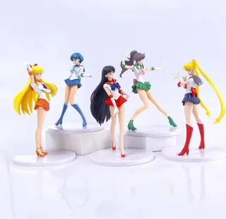 Conjunto de 5 figuras de las Sailor Moon. Cada figura representa a una guerrera. - Sailor Moon - Sailor Mercury - Sailor Mars - Sailor Jupiter - Sailor Venus