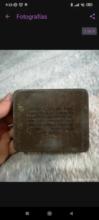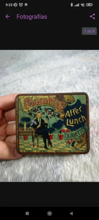 Antigua caja de hojalata para cigarros Murattis. Caja cigarros murattis after lunch 20 cigarettes - Diseño con ilustración de un hombre fumando y el texto After Lunch Cigarettes. - Inscripción B. Muratti Sons & Co Ltd Manchester - London en la base.