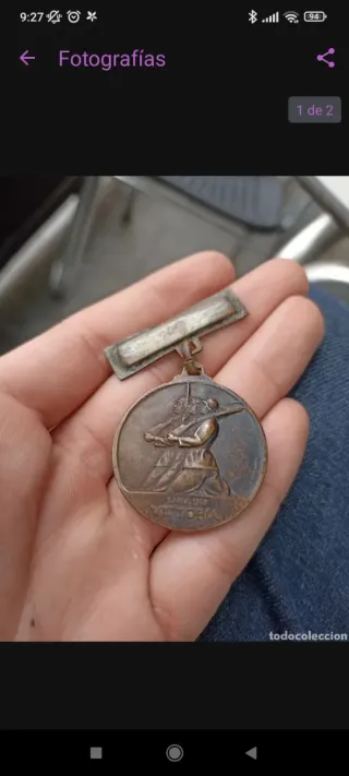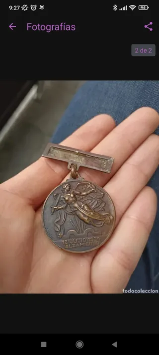 Medalla conmemorativa de la Guerra Civil Española. - Representa la Victoria y el Alzamiento. - Diseño circular con figuras. - Incluye cinta de sujeción.