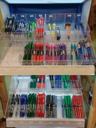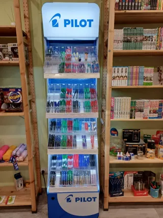 Expositor de la marca Pilot, ideal para organizar bolígrafos y otros artículos de escritura. - Diseño vertical con múltiples niveles. - Iluminación en todos los niveles. - Base azul con el nombre de la marca. Material Pilot incluido.