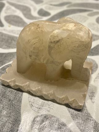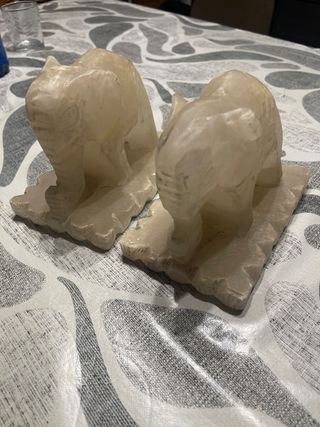 Adorables elefantes tallados en alabastro, perfectos para decorar. - Material: Alabastro. - Diseño: Pareja de elefantes. - Base: Cada elefante descansa sobre una base rectangular.