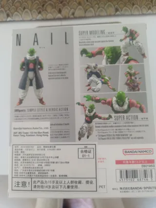 Figura de acción de Nail de la línea S.H.Figuarts, basada en Dragon Ball Z. Diseñada por Tamashii Nations. Importada con caja marrón - Fabricada por Bandai Spirits. - Hecha en China. - Incluye accesorios y base (no visibles en detalle). - Caja con ventana para exhibición.