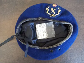 Boina azul de suboficial aéreo de la Guardia Civil, modelo de 1975. Incluye el emblema oficial. - Color azul. - Emblema con corona y espadas cruzadas.