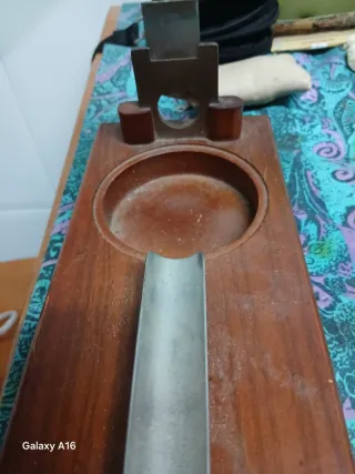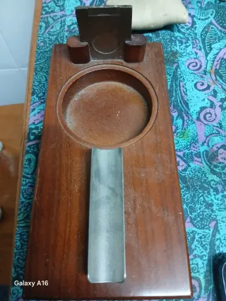 Elegante cenicero de madera para puros. Su diseño clásico lo hace un accesorio distintivo. - Base de madera. - Inserto metálico. - Soporte para puro.
