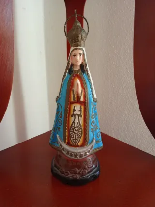 Bonita figurita de nuestra señora de ITATI, ideal para devoción o decoración. - Representación con corona y luna a sus pies. - Colores vivos en su vestimenta azul y detalles dorados. - Base detallada con motivos ornamentales. - TASADO POR PROFESIONAL.