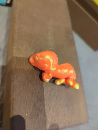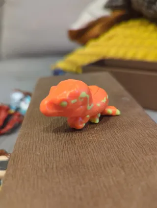 Figura de colección de Kinder Joy de la saga Jurasic World. Es un pequeño dinosaurio de color naranja con detalles verdes. - Diseño inspirado en Jurasic World. - Color principal naranja con manchas amarillas