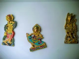 Conjunto de cuatro figuras decorativas de estilo tailandés, ideales para añadir un toque exótico a tu hogar. - Elaboradas con detalle. - Diseños inspirados en la cultura tailandesa. - Pintura colorida y dorada.