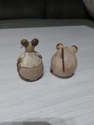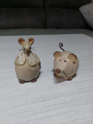 Set de dos figuras decorativas de cerámica con forma de ratones. NO SE HACEN ENTREGAS EN PERSONA - Material: Cerámica. - Diseño: Ratones. - Cantidad: 2 unidades.
