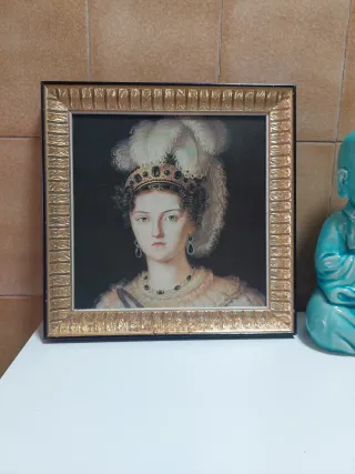 Antiguo cuadro de M. Josefa Amalia de Sajonia, (1803-1829), quien fue reina consorte de España como la tercera esposa del rey Fernando VII. con un marco dorado y ornamentado. Medidas: 29x29 - Retrato de M. Josefa Amalia de Sajonia. - Marco dorado con detalles. - Pintura de época.