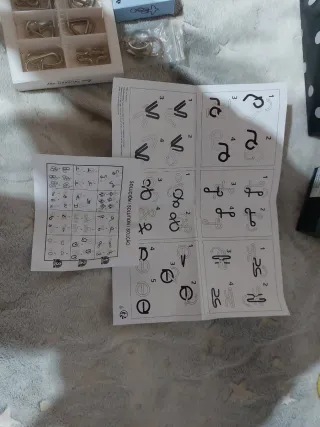 Conjunto de 30 rompecabezas metálicos de diferentes diseños, ideal para coleccionistas o para regalar. - Incluye un estuche de madera con compartimentos para organizar los rompecabezas. - Se acompaña de instrucciones para resolver algunos de los modelos. - Los rompecabezas son de metal y vienen en un estuche de madera.