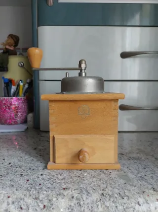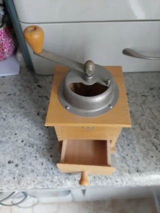 Molinillo café madera y metal antiguo