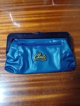 Bolso vintage original marca Charlie, años 60–70. Modelo tipo clutch con cierre rígido de boquilla. Exterior en polipiel azul e interior forrado en tejido sintético. Pieza auténtica de época, ideal para coleccionistas o para usar como complemento retro. Estado: bueno para su antigüedad, cierre funcional y forro limpio. Puede presentar leves señales normales del paso del tiempo (ver fotos). Muy bien conservado. Medidas: 18cm x 12cm