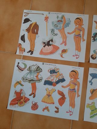 Lote de cuatro láminas de muñecas recortables, dos de Lorelei y dos de Yolanda. Cada lámina incluye una muñeca y varios conjuntos de ropa y accesorios para vestir. - Lámina nº5: Lorelei - Lámina nº6: Lorelei - Lámina nº7: Yolanda - Lámina nº8: Yolanda Muy bien conservadas, perfectas para coleccionistas o para jugar. etiquetas: retro vintage juguetes antiguos años 70 80 cromos pegatinas nostalgia colección