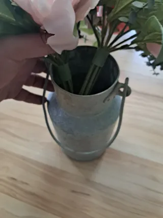 Recipiente antiguo de metal, ideal para decoración. Se incluyen flores sintéticas. - Material: Aluminio. - Diseño tipo lechera clásica. Hago envíos por Wallapop. Wassap al 618133030. Tengo muchas mas antigüedades.