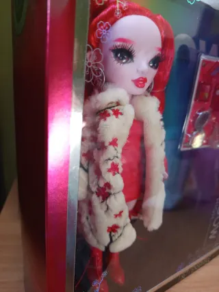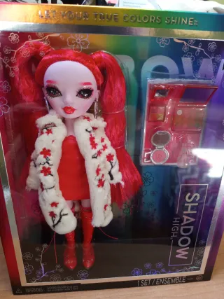 Muñeca de colección de la línea Shadow High. Presenta un diseño inspirado en el mundo del maquillaje y la moda. - Pelo largo de color rojo vibrante. - Atuendo rojo con detalles de flores. - Incluye accesorios de maquillaje.