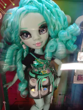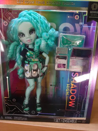 Muñeca de colección Shadow High. - Incluye accesorios como portátil y bolso. - Diseño con temática tecnológica.