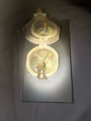 Brújula náutica Stanley London con tabla de senos naturales. - Fabricada en metal. - Grabado de Stanley London y Natural Sine. - Incluye tabla de senos con valores numéricos.