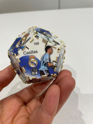 Puzzle 3D del Real Madrid Balompié. - Diseño con imágenes de jugadores y escudo. - Piezas de cartón y plástico. - Nuevo, tiene sus años.
