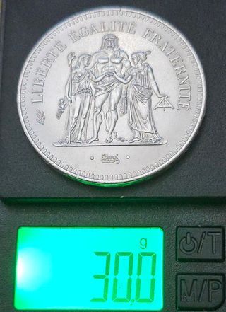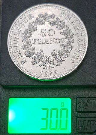Moneda de 50 Francos de Francia, año 1976. - Diseño con laureles y detalles. - Peso: 30.0 g.