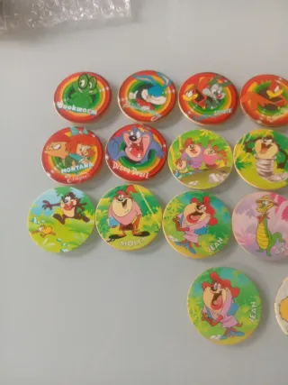 Lote de 27 tazos y 3 repetidos. - Diseños variados de Looney Tunes y otros personajes. - Ideal para completar colecciones.