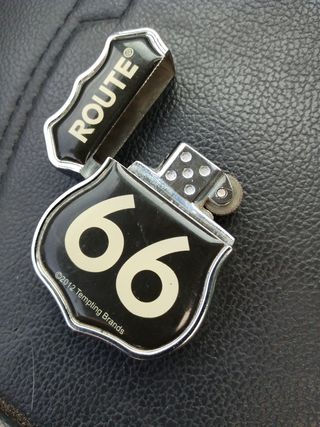 Mechero con diseño de la icónica Route 66. - Diseño en forma de escudo. - Detalle del número 66. - Inscripción Route®. - Copyright ©2012 Tempting Brands.