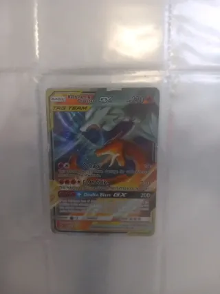 Carta coleccionable de Charizard GX. - Ataque Ala: 70 de daño. - Tormenta Carmesí: 300 de daño. - Enojo GX: Habilidad especial. -Precio negociable.