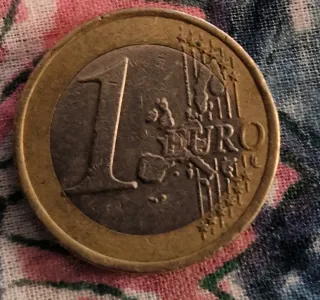 Moneda de 1 euro de Austria, acuñada en el año 2002. - Diseño conmemorativo. - Borde exterior con estrellas. - Inscripción EURO y valor nominal.