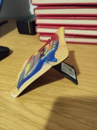 Expositor de la marca Kinder Sorpresa con un diseño divertido. - - Transparente con detalles en naranja y rojo. - Incluye una pequeña bandera blanca.