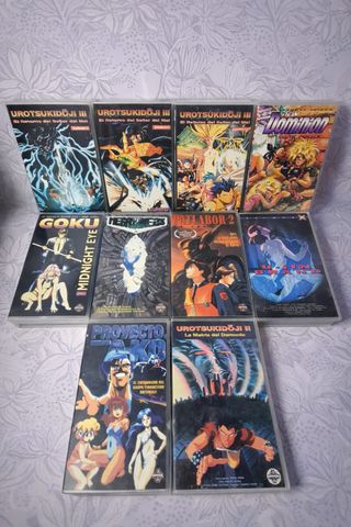 Lote VHS anime clásico Urotsukidoji Patlabor Goku Megazone y más 🧾 DESCRIPCIÓN (optimizada para vender) Lote de VHS de anime clásico retro, ideal para coleccionistas y amantes del anime de los 80 y 90. Incluye títulos como Urotsukidoji (varios), Patlabor 2, Goku Midnight Eye, Megazone 23, Proyecto A-Ko, New Dominion Tank Police y más. Estado general bueno, con señales normales del paso del tiempo. Algunas cintas pueden requerir revisión o no han sido probadas recientemente. Perfecto para colección, decoración o fans del anime vintage. 👉 Descuento si te llevas más lotes.