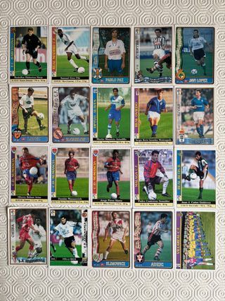 Colección de 20 fichas de la Liga de Mundicromo, con jugadores de equipos como el F.C. Barcelona, Real Madrid C.F., Valencia C.F, y más. - Incluye jugadores como Hesp, Samuel Eto'o, Roberto Carlos, y otros. - Diversos equipos representados. - Ideal para coleccionistas de fútbol. Rud Hesp (00) Samuel Eto'o (00) Pablo Paz (96-97) Fuentes (97-98) Javi López (96-97) Piojo López (96-97) Roberto Carlos (96-97) Astudillo (00) Boris (00) Rivas (97-98) Belsué (00) Manusovich (00) Jorge Pérez (00) Contreras (00) Cañas (00) Chiba (97-98) Fede y José Ramón (Écija) Óscar y Vidal (Le Vellisca (98-99) Klimowicz (96-97) Adic (96-97) Villarreal