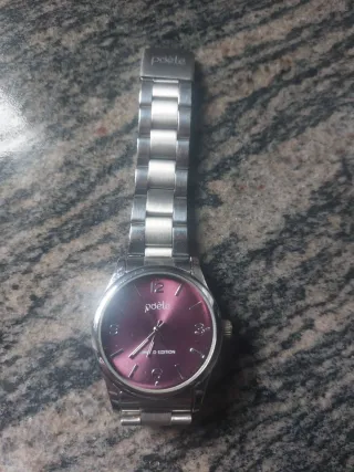 Elegante reloj de pulsera con esfera en tono burdeos y detalles plateados. Un accesorio con un diseño clásico y sofisticado. - Esfera de color burdeos. - Correa de eslabones plateada. - Detalle Limited Edition en la esfera. - Marca: Poète