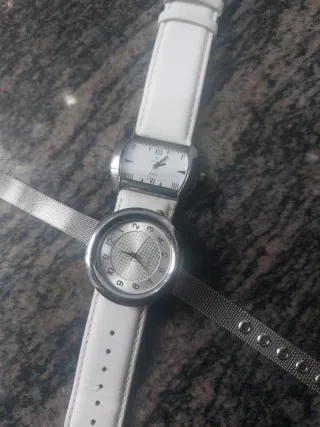 Relojes de pulsera blancos y plateados