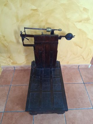 Pieza de colección con aspecto antiguo. - Fabricado en metal con detalles oxidados. - Base de madera con remaches.