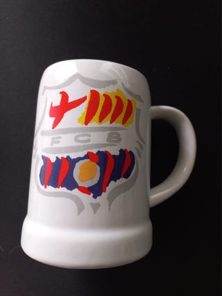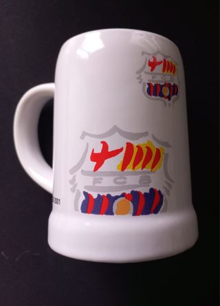 Jarra conmemorativa del FC Barcelona. - Diseño con el escudo del club. - Colores distintivos del equipo. Precio Unitario, dispongo 5 de jarras que se venden conjuntas por 25 €. - Nuevas a estrenar, han estado guardadas. - Capacidad de más de 1/2 litro No acepto envios por InPost. Solo por Correos.