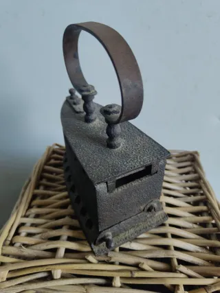 una pequeña plancha antigua, fabricada en hierro fundido. Su diseño es clásico y robusto, ideal para coleccionistas o como elemento decorativo. - Medidas 14x9x10 - Material: Hierro fundido. - Diseño: Clásico y funcional. - Tamaño: Pequeño.