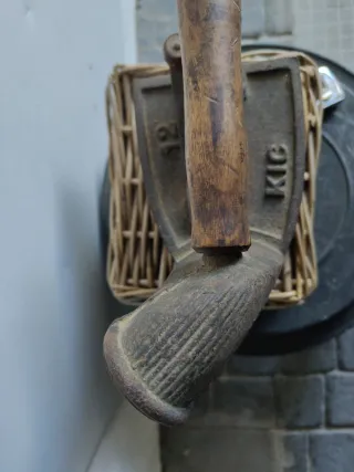 Pieza de colección, plancha antigua de hierro con mango de madera. - Medidas 18x10x22 - Material: Hierro fundido. - Mango: Madera. - Diseño clásico.