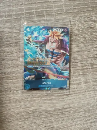 Carta de personaje Marco, Pre-Release Winner, del juego de cartas coleccionables One Piece TCG. - Coste: 4 - Poder: 6000 - Afiliación: Whitebeard Pirates - Habilidad: On K.O.: You may add this Character card to your hand.
