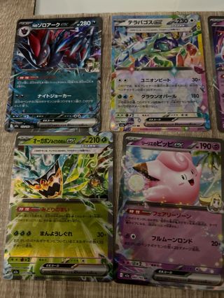 Colección de cartas Pokémon EX Mega. 1.5€ cada carta - Carta No. ZOROARK EX con 280 de poder. - Carta TERAPAGOS EX con 230 de poder. - Carta LATIAS EX con 210 de poder. - Carta ROCKET'S CROBAT EX con 310 de poder. - Carta MEGAVOLT EX con 350 de poder. - Carta PRIJURAS EX con 300 de poder. - Carta CLEfairy EX con 190 de poder. - Carta ORBONG EX con 210 de poder.