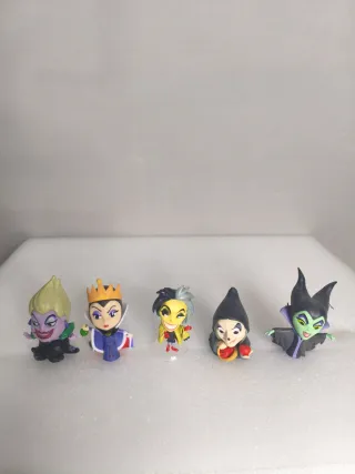 Conjunto de figuras coleccionables de villanas de Disney. - Incluye 5 figuras. - Diseño estilo chibi o funko pop. - Personajes icónicos de películas Disney.