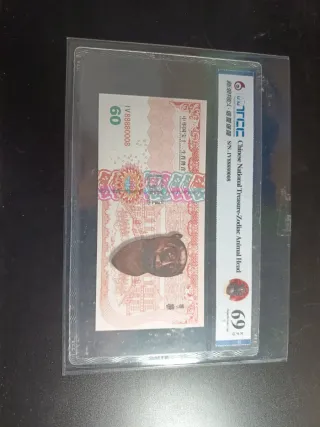 Billete conmemorativo del Tesoro Nacional Chino, con diseño del Zodiaco. - Serie: IV88880008 - Valor: 60 - Diseño: Cabeza de animal del zodiaco