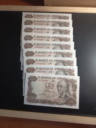 Lote 9 Billetes 100 Pesetas España 1970
